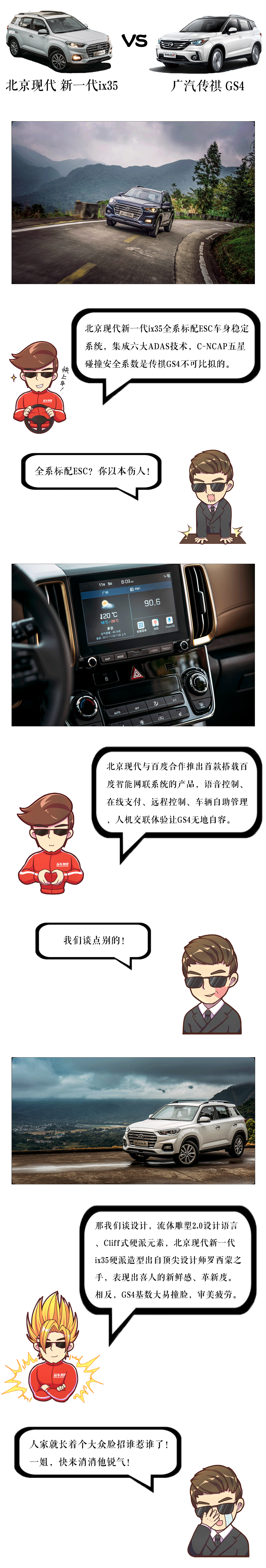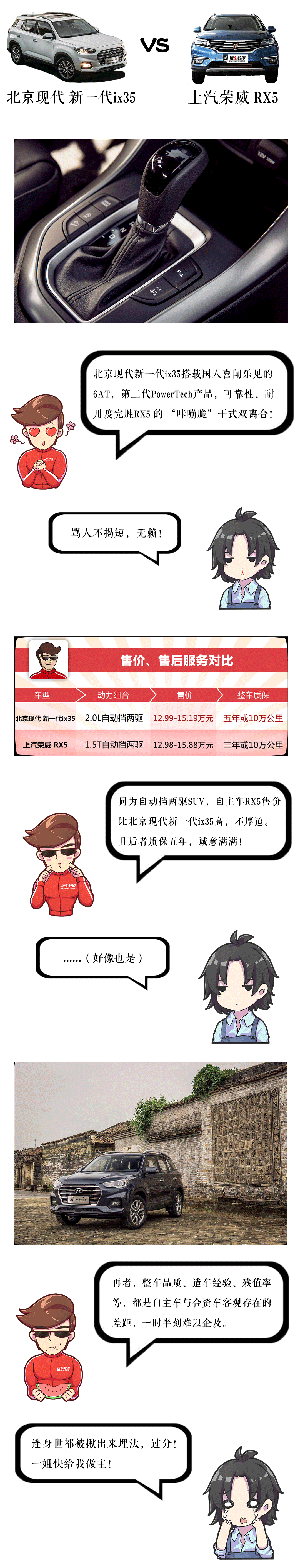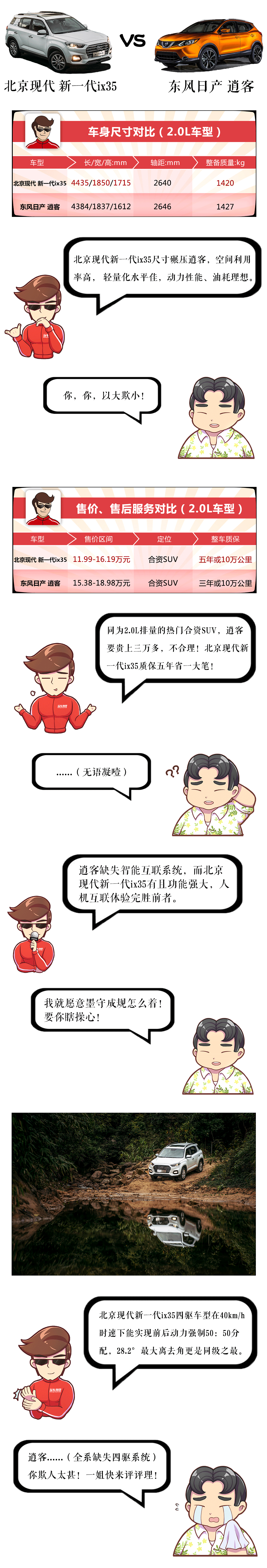 对比同级合资对手逍客,北京现代新一代ix35在车身尺寸、价格、智能网联以及通过性方面均有着显著优势。其久经市场考验的品质、民众口碑更是GS4和RX5等一众自主SUV所无可比拟的,默契、平顺的动力组合更是自主车的效仿目标。辅以厚道的售价,硬派智联SUV北京现代新一代ix35早已成竞品们的众矢之的。