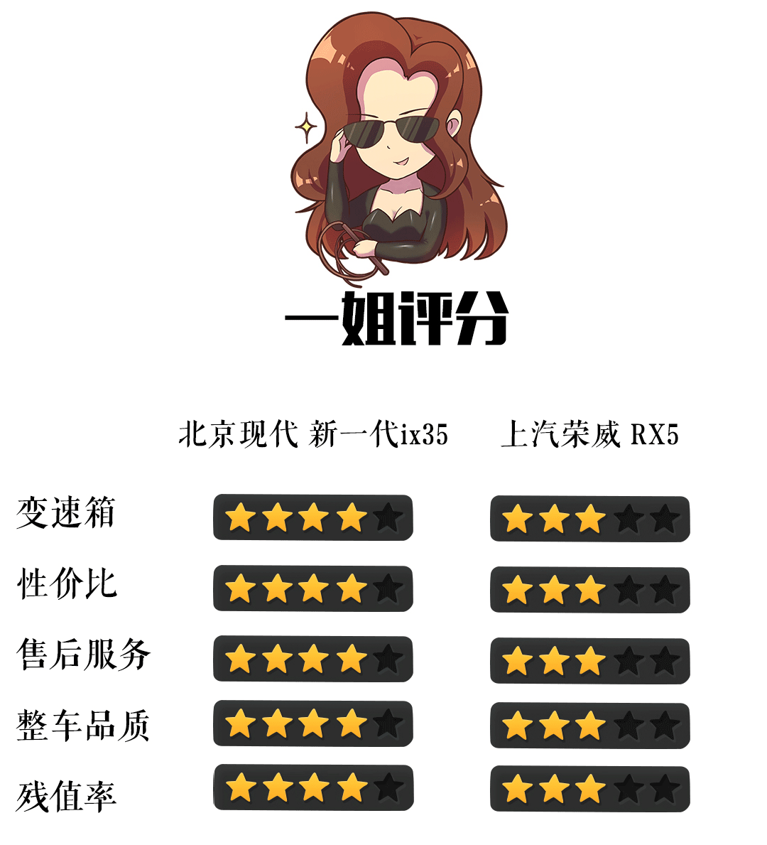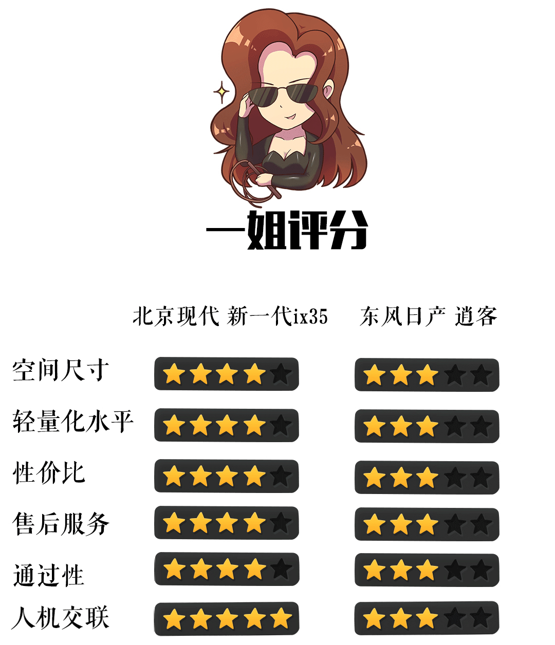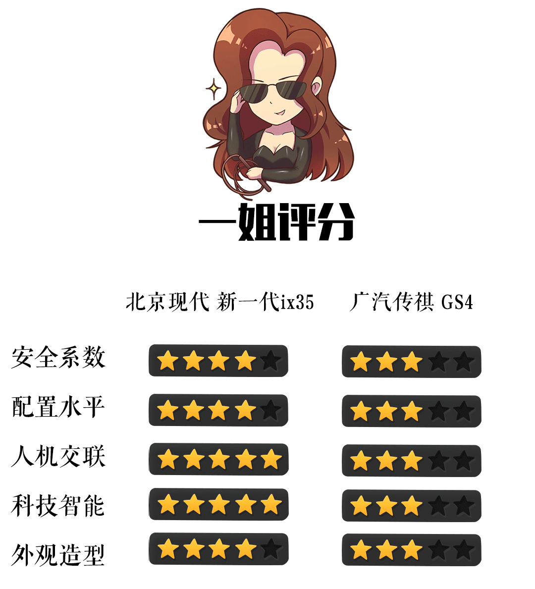 对比同级合资对手逍客,北京现代新一代ix35在车身尺寸、价格、智能网联以及通过性方面均有着显著优势。其久经市场考验的品质、民众口碑更是GS4和RX5等一众自主SUV所无可比拟的,默契、平顺的动力组合更是自主车的效仿目标。辅以厚道的售价,硬派智联SUV北京现代新一代ix35早已成竞品们的众矢之的。