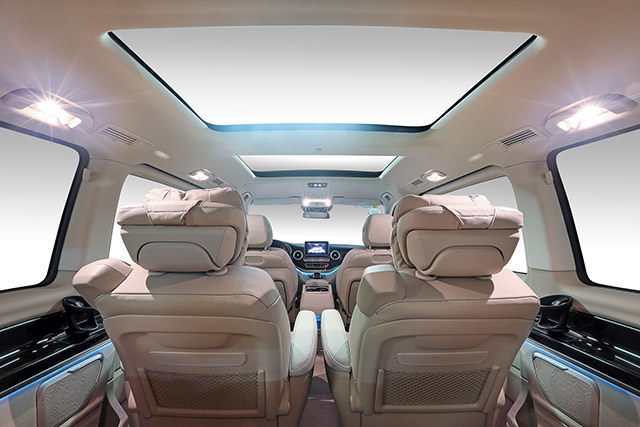 一道美味佳肴,离不开新鲜食材的搭配,与恰到好处的火候,不但要满足人们的口腹之欲,还要让食物中的营养得到充分的吸收,因此好的厨师总是追求细节,为的是给食客最体贴的关怀。如同V级车的优雅尊荣不仅停留在外观的大气稳健,用心之处还体现在车内乘用舱的尊贵享受。作为梅赛德斯-奔驰产品家族中体积最大的车型之一,专为中国客户量身打造的V 260 L尊贵加长版轴距达到3,430毫米。在不放倒第三排座椅的情况下,1,410升的超大后背箱装载空间令其堪称同级“空间之王”。具备豪华头枕、加热通风功能和按摩功能的头等舱级独立座椅设计,在长途旅程中帮助驾驶者保持身心舒适,缓解身体疲劳。当金色的阳光随着全景式滑动天窗的徐徐开启倾泻入车内,德国国宝级音响系统—— Burmester®环绕音响此时亦释放出音乐厅般的完美音质,顿时内外俱澄澈。此外,内置冰箱及可提供冷热两种功能的杯托,在不同季节满足乘客多样化需求。同时车内还配备了220V电源插座、12V电源插座、USB电源插座和多媒体接口等,每一处细节都颇具诚意。V级车树立了豪华MPV的全新标杆,满足中国消费者兼顾事业家庭的诉求,宜商宜家,尽展尊贵风采。