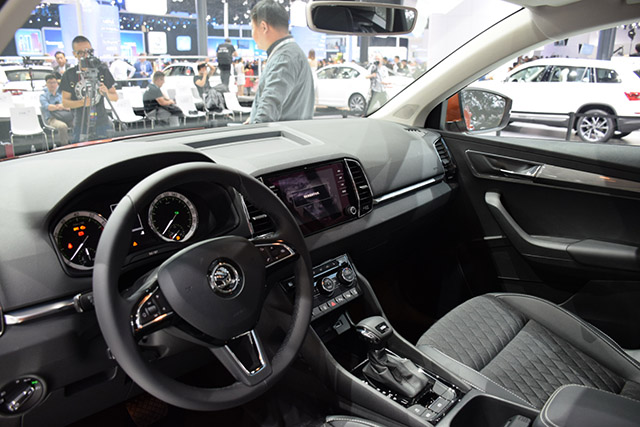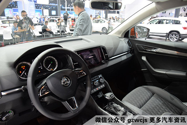 内饰方面,KAROQ的整体风格与柯迪亚克相似,方向盘为三辐式的设计,中控台比较简约,配备了一块大尺寸的中控屏。