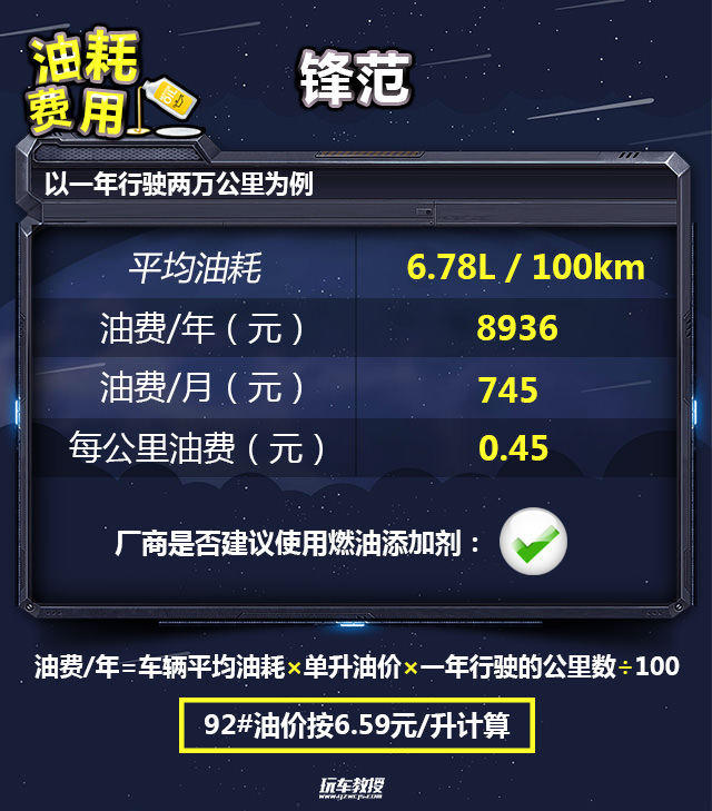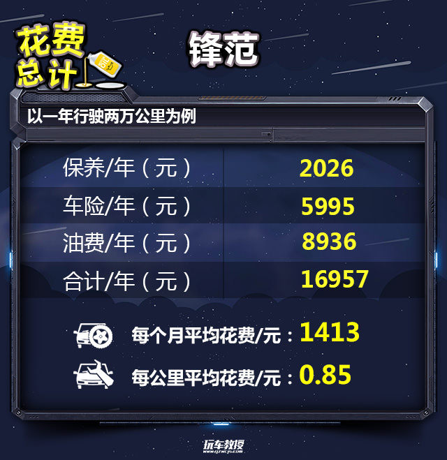 教授总结:从结果上看,锋范的保养费用并不贵,但是如果你每次保养的时候使用添加剂,费用会多出不少。搭载着地球梦的发动机,最大的好处就是油耗比较低,锋范的平均油耗低至6.78L/100km,一年两万公里的油费是8936元。按一年两万公里计算,锋范的年花费是16957元,月花费为1413元,对于多数年轻人还是能养得起的。