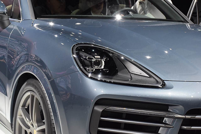 新车前脸主要针对前大灯组造型以及保险杠进行修改。大灯组采用了类似于新款Panamera上的家族式的LED大灯、扩大了前脸格栅的整体面积,而且整个车头在设计感上更加的强调了横向线条的延伸感。