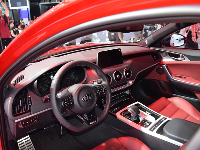 内饰方面,Stinger在保留起亚家族设计风格的同时加入了更多创新元素,包括圆形空调出风口和凸起的中控台造型等,看上去更加拥有运动氛围。不过三辐式多功能方向盘、双圆式仪表等设计还是稍显平庸。配置方面以海外版车型作为参考,其配备有驾驶员注意力监测系统、碰撞预警、自动紧急制动、行人监测、自适应巡航、车道保持辅助、驾驶模式选择及抬头显示等。