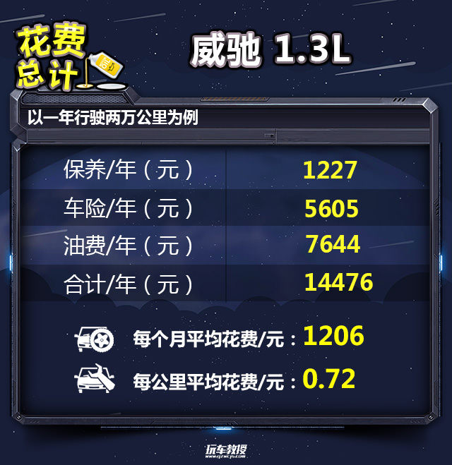 教授总结:威驰的保养间隔为10000公里/次,在同级别车型中具有一定的优势。小保养的价格是425元,行驶6万公里的保养总费用为3682元,保养价格很实惠。百公里油耗方面,1.3L车型的百公里平均油耗为5.8L,1.5L车型为6.91L,表现都非常的出色。按一年两万公里计算,1.3L车型年花费为14476元,1.5L车型年花费为 16351元,整体花费比锋范稍低。