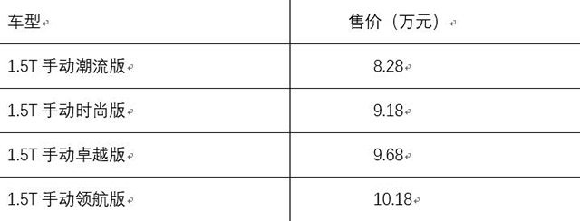 动力方面,搭载了1.5T的发动机,最大功率154Ps,峰值扭矩为220N·m,传动系统匹配的是5速手动变速箱。
