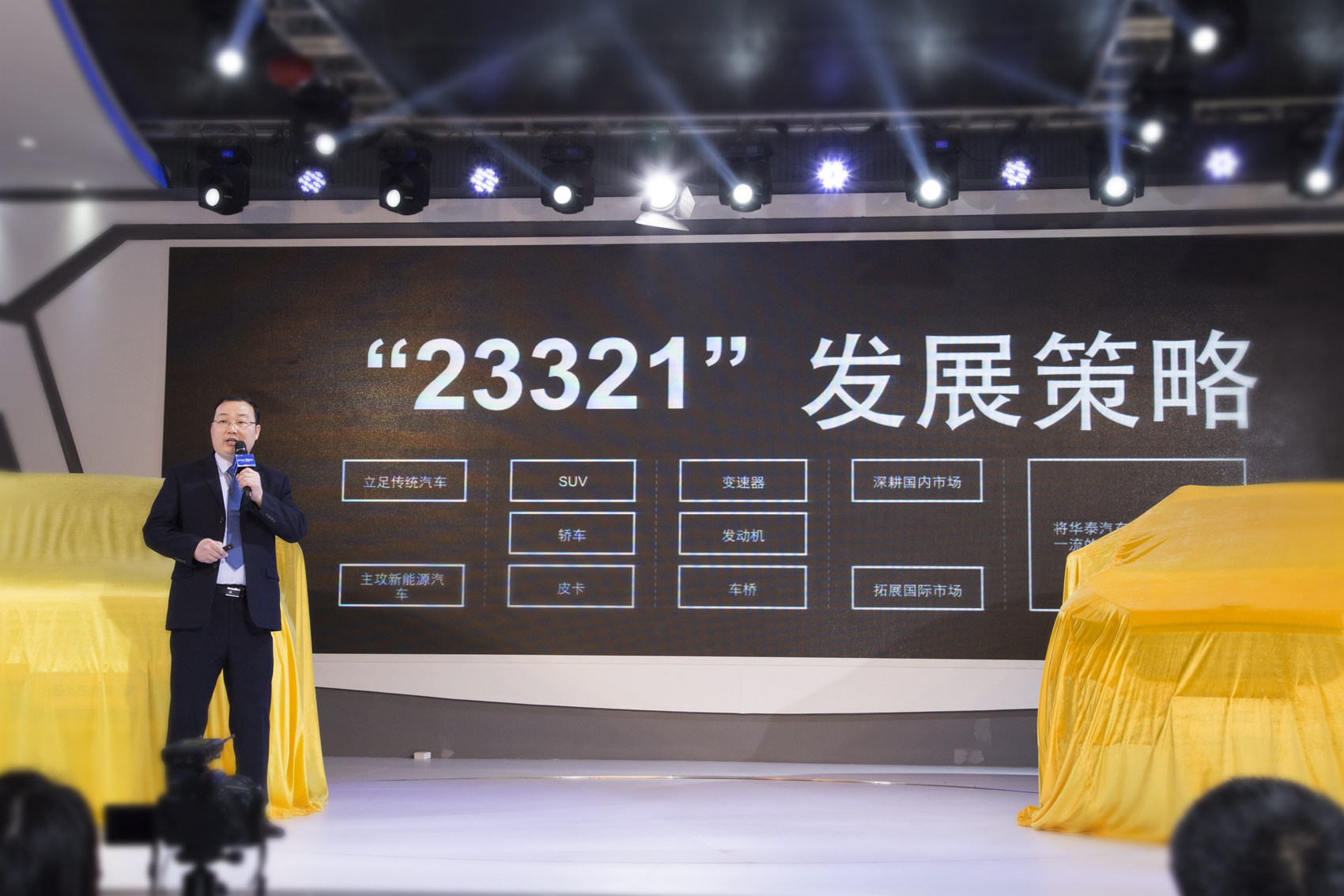 在创新发展的基础上,华泰汽车确定了“23321”的整体发展策略,即立足传统汽车,主攻新能源汽车;重点持续发力SUV、轿车、皮卡三个主力车型;强化变速器、发动机以及车桥方面的优势;同时深耕国内市场、拓展国际市场,最终将华泰汽车打造成为中国一流的自主品牌汽车集团。