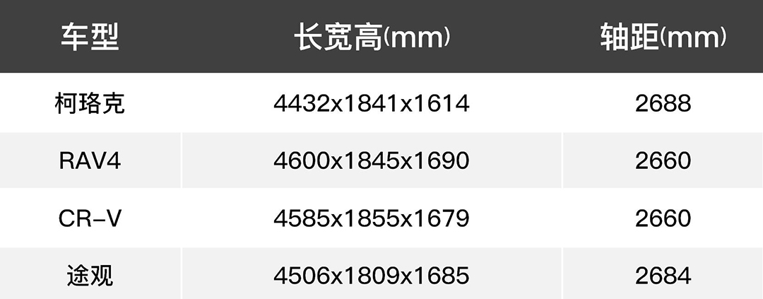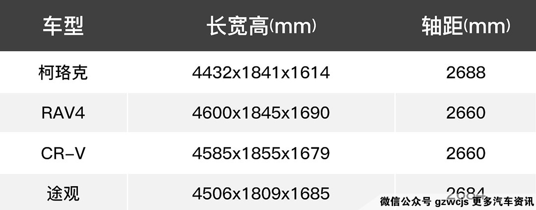柯珞克是斯柯达旗下一款全新的紧凑型suv,这款车长宽高分别为 4432mm、1841mm、1614mm,轴距为2688mm,虽然轴距相对比对手稍长,但在车身尺寸方面并不占优势。