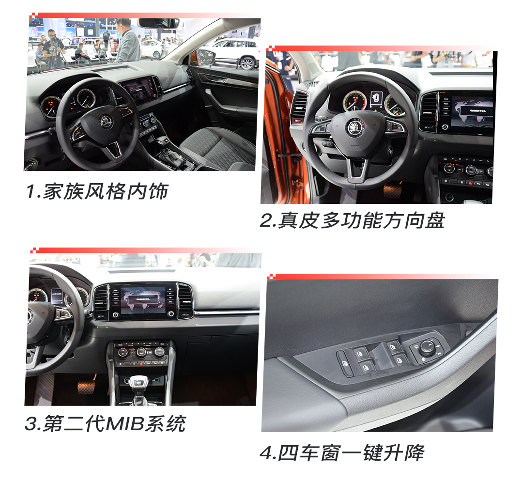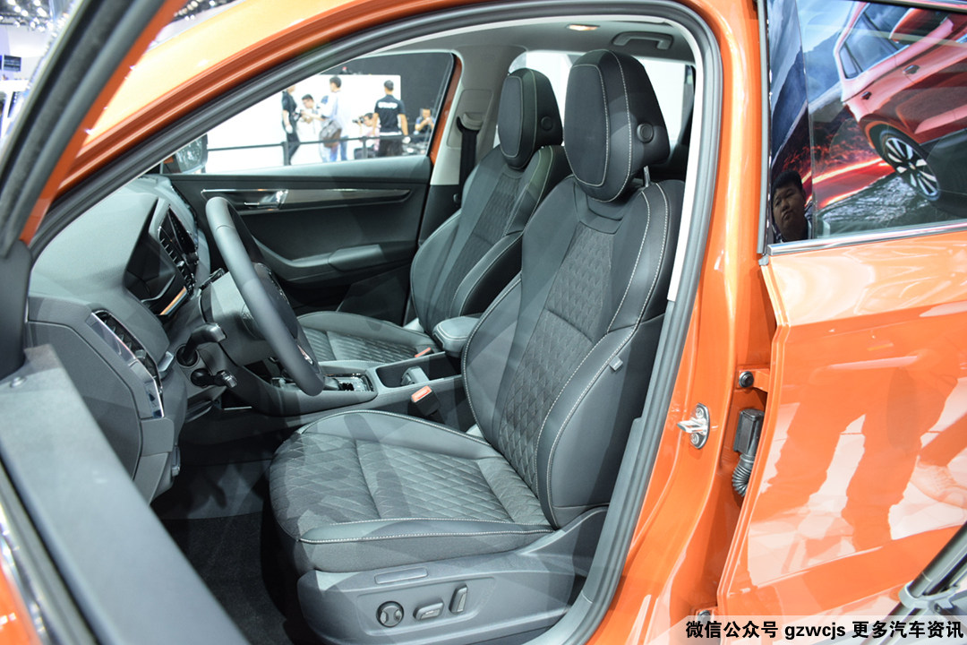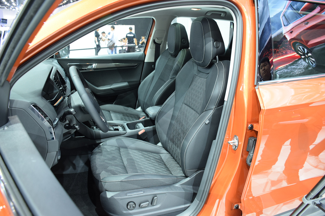 柯珞克作为suv,空间自然不成问题,前排座椅的舒适性和包裹性都非常好,坐垫较软,腰部、肩部和驾驶员身体贴合度也很不错,并且采用电动调节,带3组记忆功能,前排座椅带有加热功能。后排空间经过加长轴距后更宽敞,坐垫长度足够,对大腿的承托很好,靠背角度适中,长途坐起来也不会觉得疲惫,后排地台凸起不算小,中间座位的乘客双脚较局促。车门采用全包式设计,避免泥水弄脏裤脚。