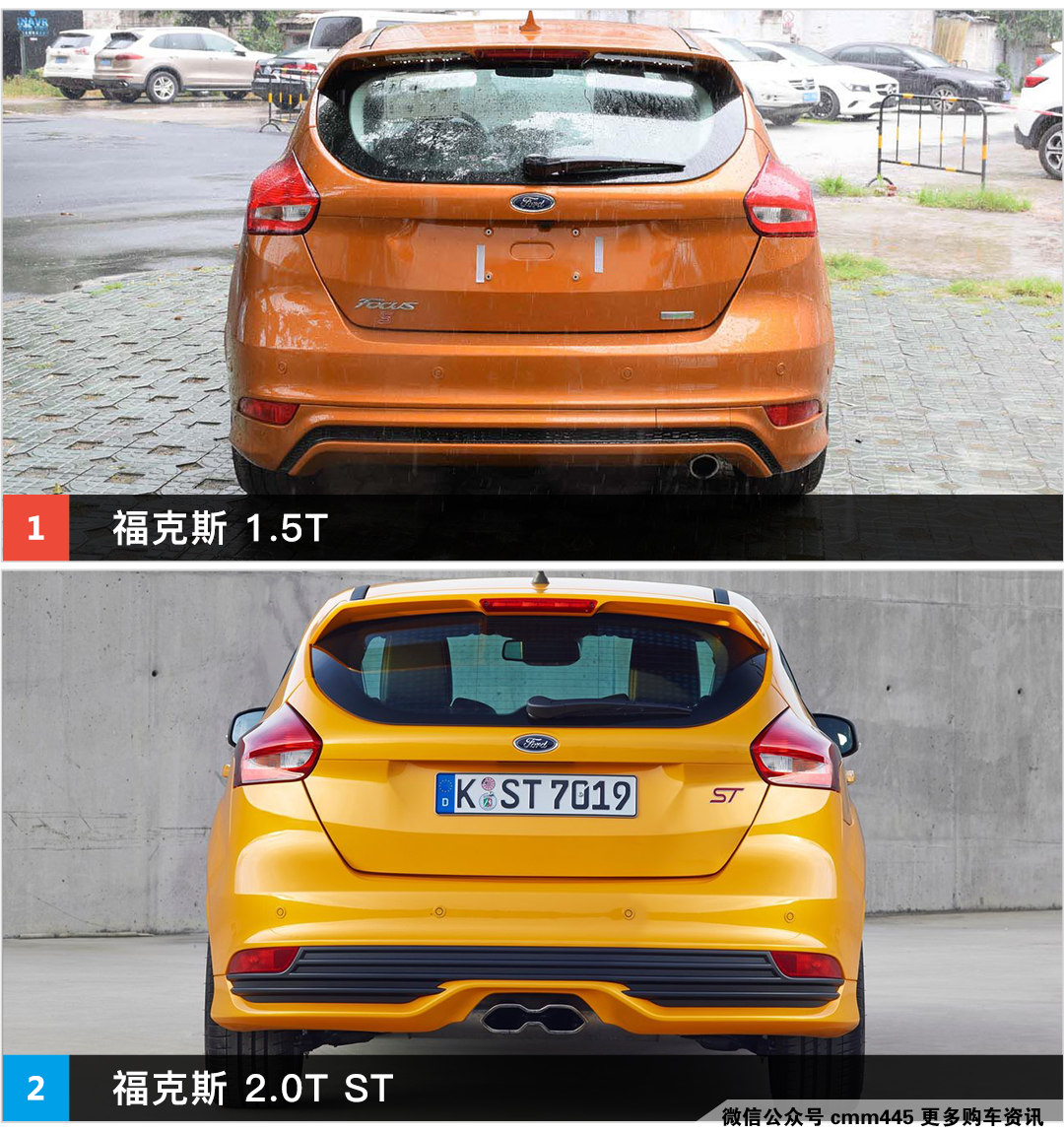 尾部同样没有太多区别,只是ST的排气改为中置双出镀铬排气,并在尾厢上多了ST的logo。而1.5T车型仅仅只是单边单出镀铬偏气。