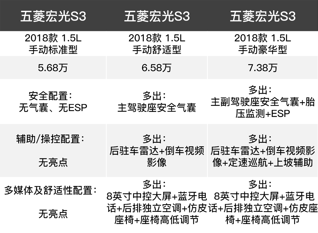 但是预算不多想买低配版的五菱宏光S3可以吗?虎哥给你看一下配置表: