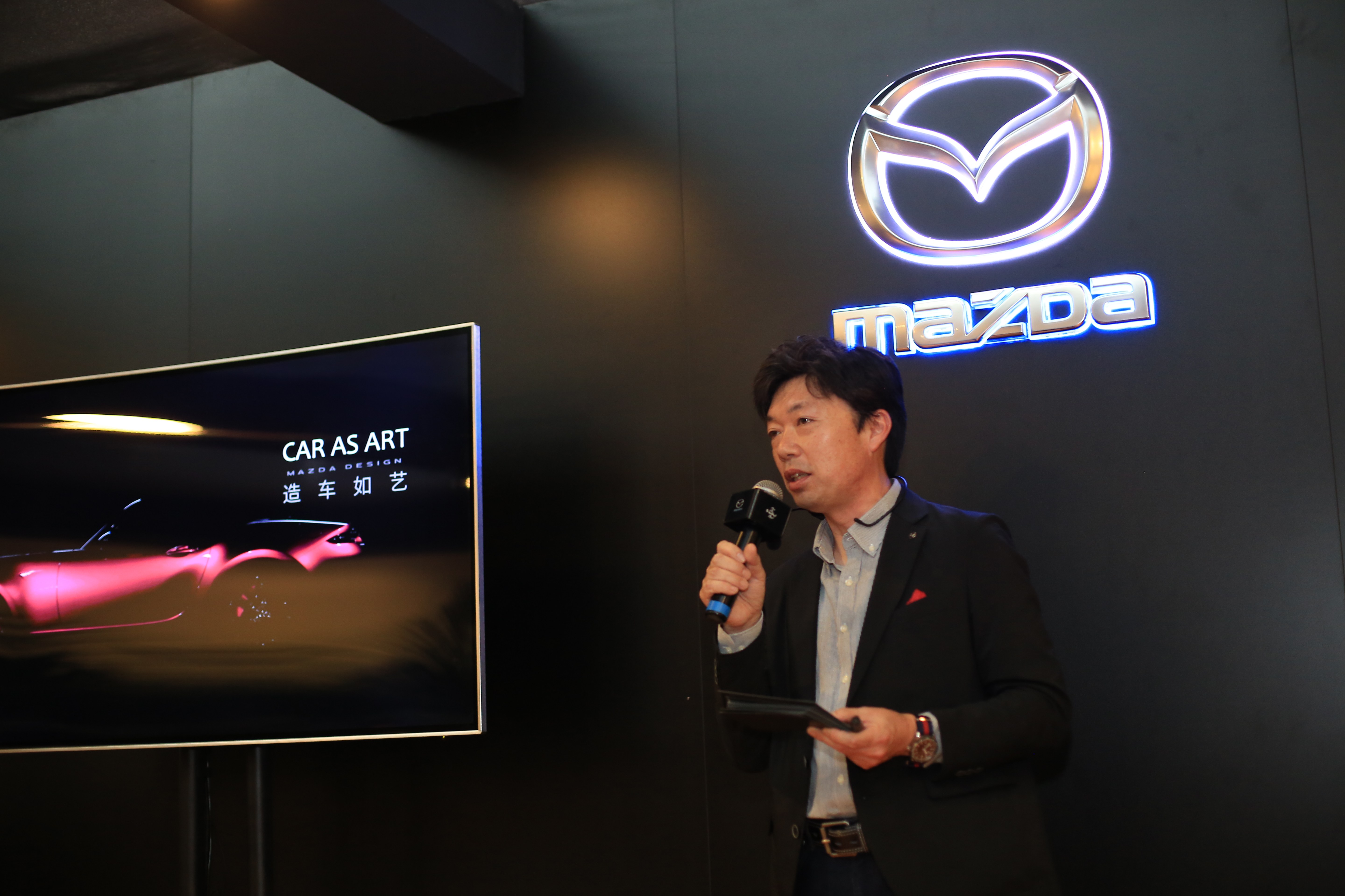 广州车展上,全新进口 MAZDA MX-5 RF 旗舰限量版正式启动国内预售,同期,以“WE ARE Roadster”为主题的MX-5公开课第二站(广州)正式开讲。一汽马自达特邀日本马自达商品本部项目负责人兼设计本部首席设计师Roadster/MX-5担当中山 雅先生作为主讲人,围绕MX-5的核心设计理念和技术优势进行讲解,让受邀媒体、粉丝代表深度领略这款神奇跑车的驾驭之道。