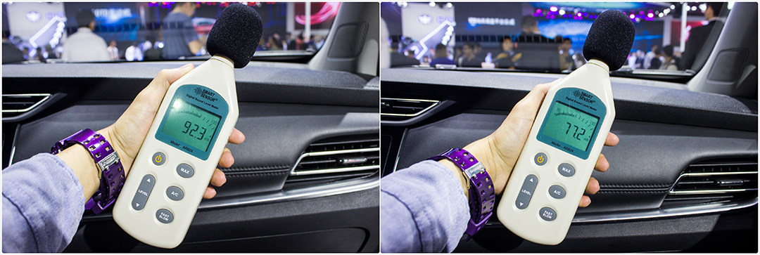 测试备注:本次隔音隔音测试为车展展台区的静态隔音测试,测试结果会因场地限制存在误差,本次数据并不代表车辆整体的隔音效果。