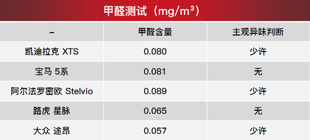 国家规定,人经常生活环境中甲醛浓度不得高于0.08mg/m³,不难发现,宝马5系、阿尔法罗密欧Stelvio均未达标(很有可能是展台的缘故)。需要指出的是,不能将有异味定性为甲醛浓度超标。