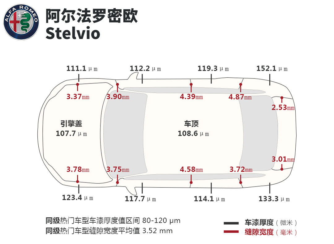 车漆厚度方面,凯迪拉克XTS的车漆厚度、均匀程度表现出上佳水准。宝马5系和素来做工粗枝大叶的阿尔法罗密欧Stelvio的车漆厚度则未达到该价位车型应有水准,粗中带细的庞然大物途昂在本次测试中令人满意。