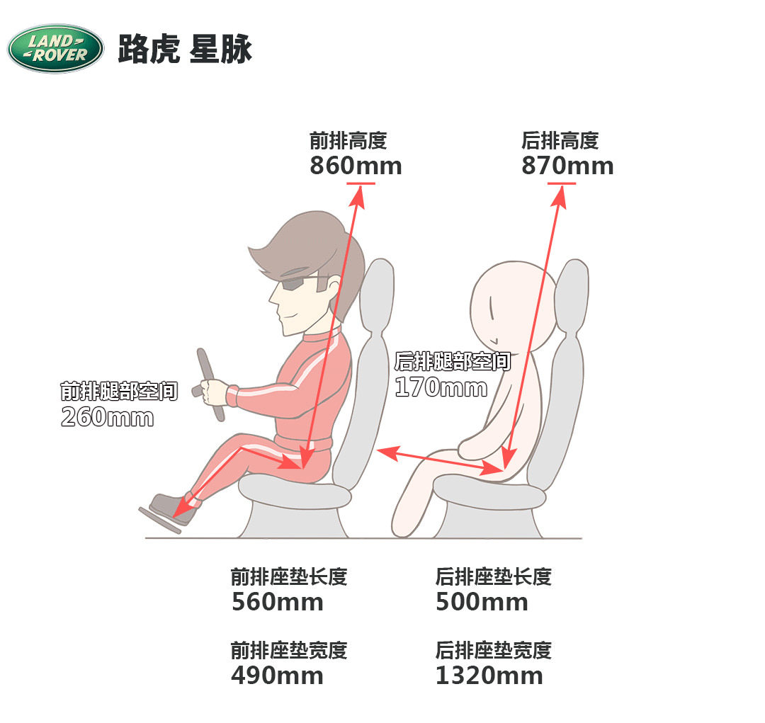 数据直观地告诉我们,SUV的前后排纵向高度、坐垫长度一般较轿车要理想,这也是SUV往往能提供更开明、通透的乘坐感受的原因。定位中型SUV的路虎星脉后排腿部空间仅为170mm(与捷豹F-PACE不相伯仲),着实让人费解。