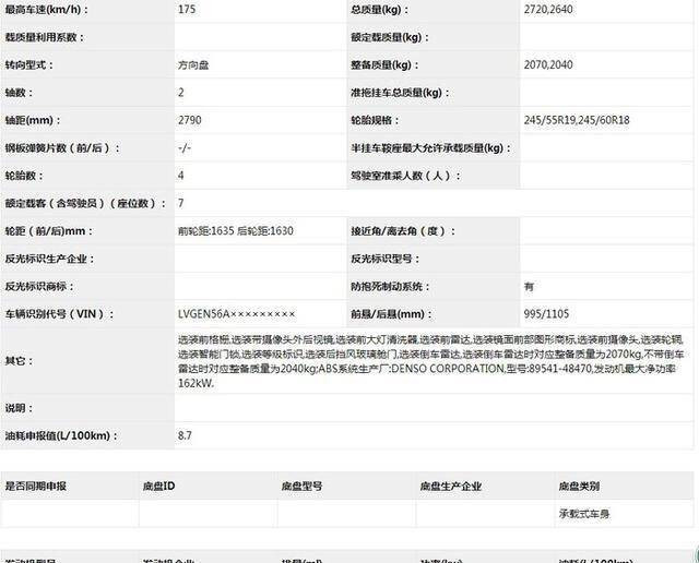 车身尺寸方面,新车长宽高分别为4890/1925/1715(带行李架为1720)mm,长度相比现款车型增加了35mm,轴距仍为2790mm,同时继续提供5座和7座两种内部座椅布局。
