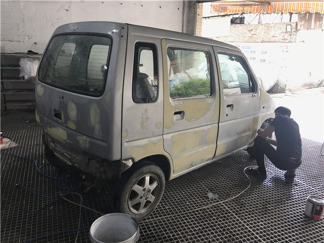 钣金上的问题也不少,全车根本就不存在一幅完整的漆面,光是打磨,就耗费了一个工人的两天时间。
