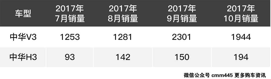 至于品牌效应低,从自身品牌麾下的产品销量便可看出端倪,无论是轿车还是SUV市场,中华品牌都不会在市场层面属于热门的选择。这里有必要提一句:虽然中华品牌有月销量达到3000台以上的车型,但是V3和H3是品牌谱系中相对较新的产品,对于开拓市场来说更具代表价值。