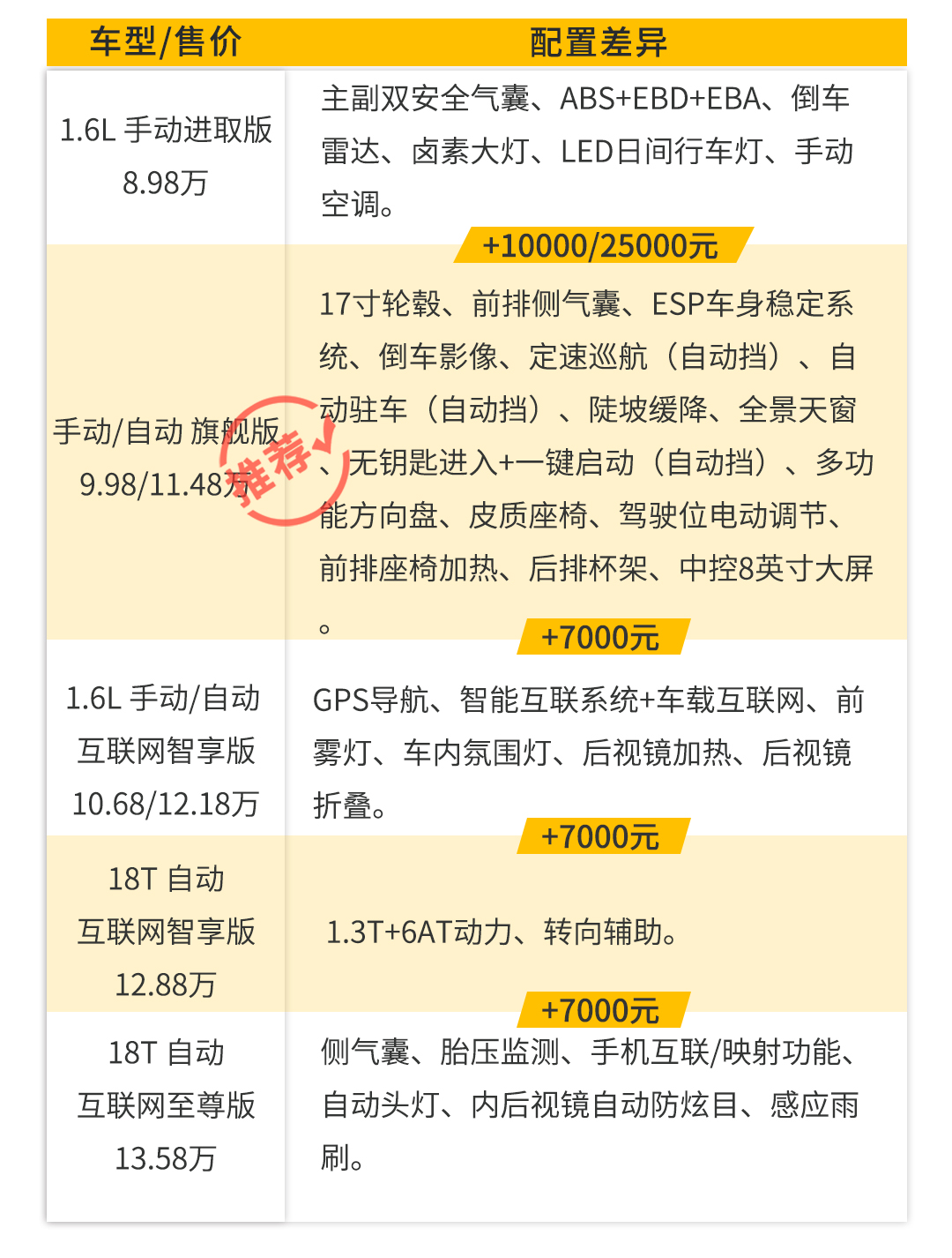 根据配置之间的差异,你会发现其实入门版本的车型配置并不算太高,仅仅维持在中等水平,而且想要享受到“互联网”SUV的体验,就起码得选择中高配才行。