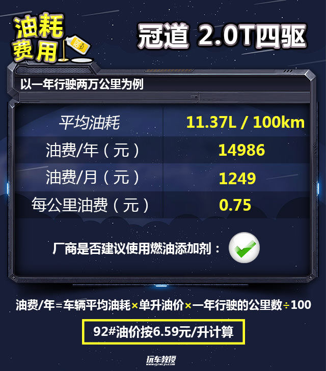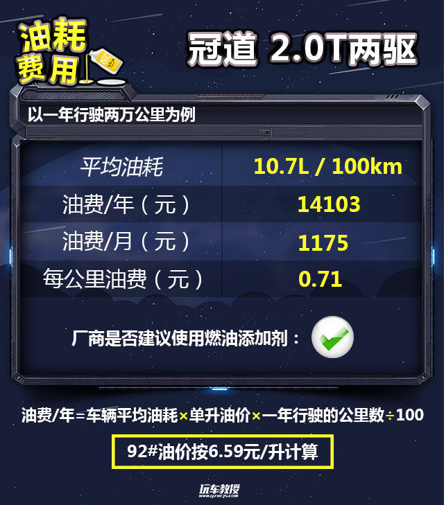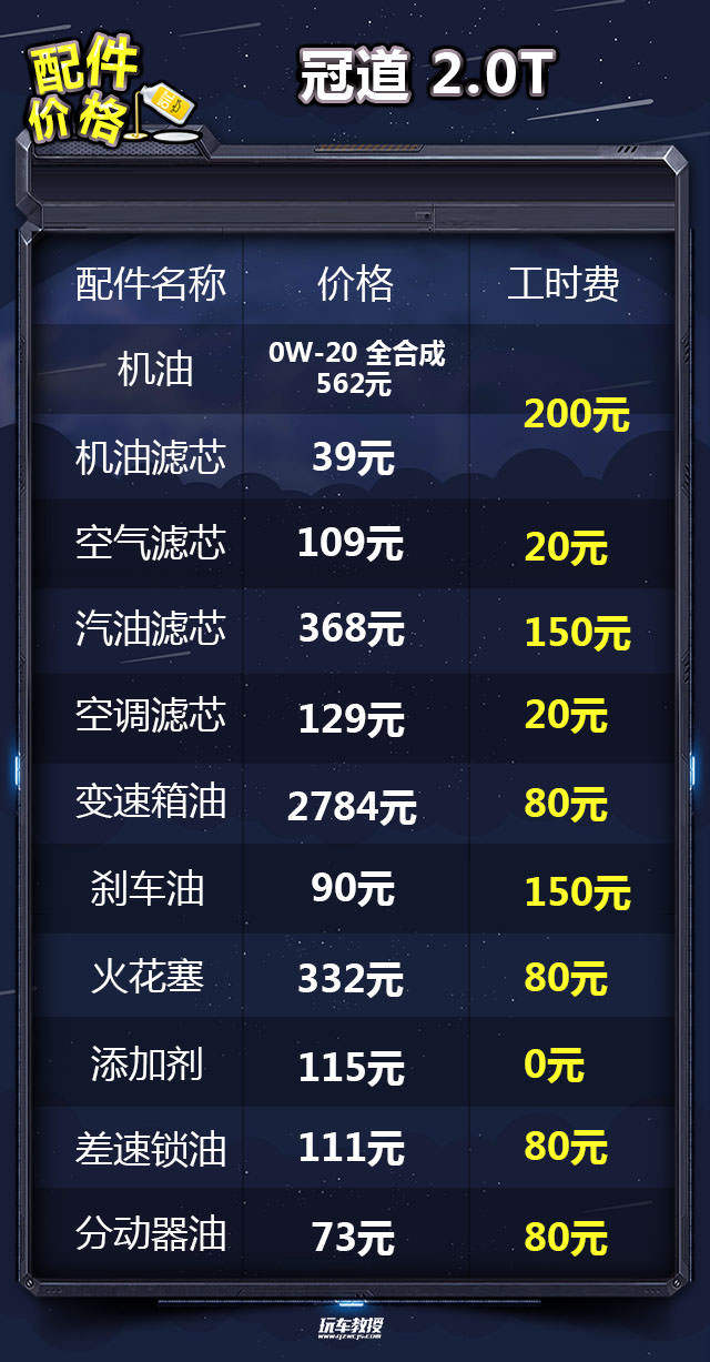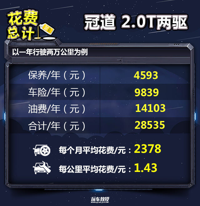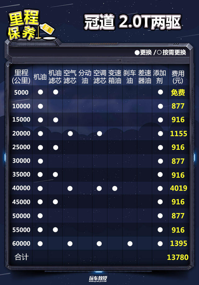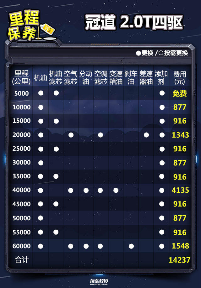 教授总结:从结果上看,冠道的小保养价格为877元,行驶6万公里的保养费用为1.5T车型11242元,2.0T两驱车型为13780元,2.0T四驱车型为14237元,表现符合同级别水平。以一年两万公里计算,冠道1.5T车型的年养车费用为24820元,2.0T两驱车型为28535元,2.0T四驱车型为30104元。整体费用支出与昂科威相差不多,但是四驱版本的费用支出要比昂科威28T车型稍贵。综合来看,1.5T和2.0T两驱车型养车费用适中,而2.0T四驱车型稍贵。