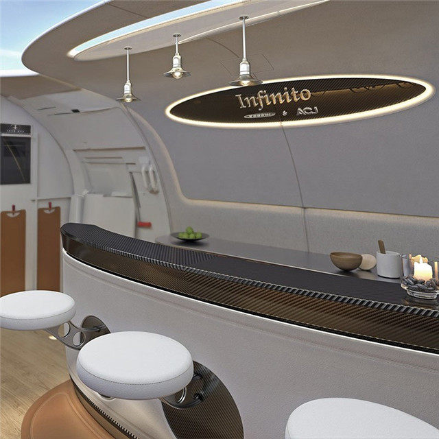 作为全球顶尖的超级跑车生产商,帕加尼又怎么会放过飞机这种彰显实力的产品。在2017年的的欧洲公务航空展上,帕加尼就跟空中客车公务机共同发布了一个基于空客ACJneo公务机打造的名为Infinito的客舱设计方案。
