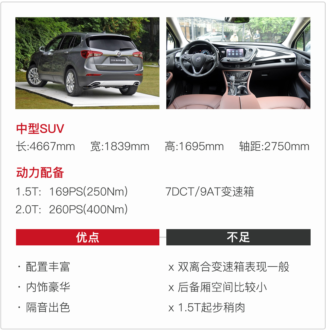 昂科威可以说是最受欢迎的中型合资SUV,整体视觉效果非常饱满,相比传统的美式SUV,昂科威显得更精致高档。在车内营造出豪华的氛围是别克的看家本领,无论造型还是用料都算得上是同级别的标杆,能触及到的地方都是软的,有着同级车难得的高质感,虽然石英表和木饰板不是什么新鲜的玩意,但效果这么好的在同级车型中也就别克了。