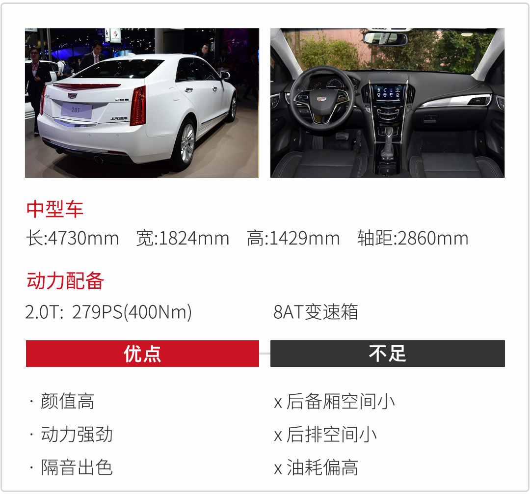 豪华运动中型车的标杆是宝马3系无疑,但虎哥觉得1.5T的宝马3系动力还是差了点,如果预算相对有限的话,凯迪拉克ATS-L其实是性价比更高的选择。凯迪拉克ATS-L自推出以来矛头就直指宝马3系,钻石切割的外观设计硬朗个性,颜值方面没得说。操控也没得挑剔,前置后驱、50:50的车身前后配重、轻量化的车身、可调节软硬的MRC电磁感应悬挂,还有全系标配的最大马力279Ps的2.0T发动机,账面数据在同级别车型可谓名列前茅,宝马3系 330i也才252Ps。悬挂是运动化的调校,整体感很强,驾驶方面几乎让人挑不出什么毛病。