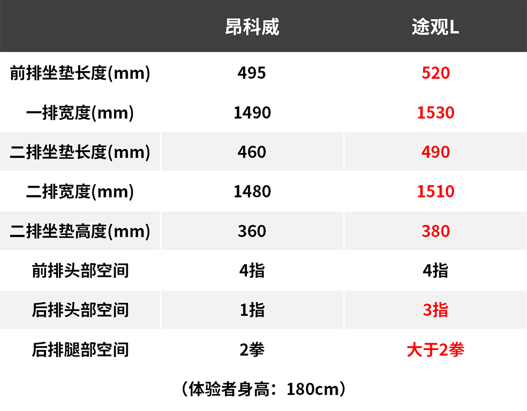 途观L得益于有着更大的尺寸,所以乘坐空间也会表现得比昂科威要好。特别是后排的空间表现,途观L的后排头部空间、腿部空间能给人提供舒适的乘坐感觉。不过说到后排中间地板,昂科威有着纯平的地板,算是扳回一城了。而两车的座椅都比较宽大厚实,乘坐表现相差并不大。