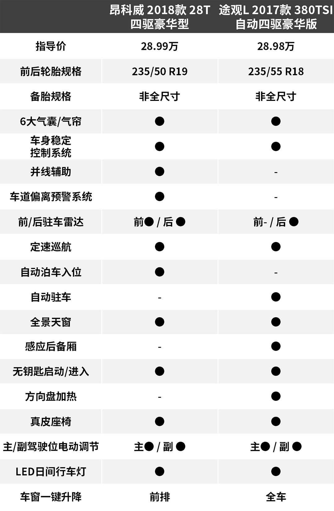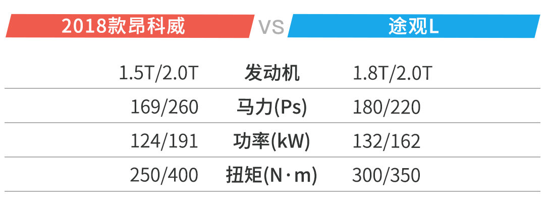 18款昂科威的28T车型搭载2.0T涡轮增压发动机+9AT,最大功率191kW,最大扭矩比老款提升了47Nm,达到400Nm。比起途观L的2.0T来得更猛。而且9AT的加入让昂科威的魅力更大了。但是话说回来,途观L的1.8T车型也是不少人的“适中之选”。同价位下,选择哪一款就要看大家的需求了。