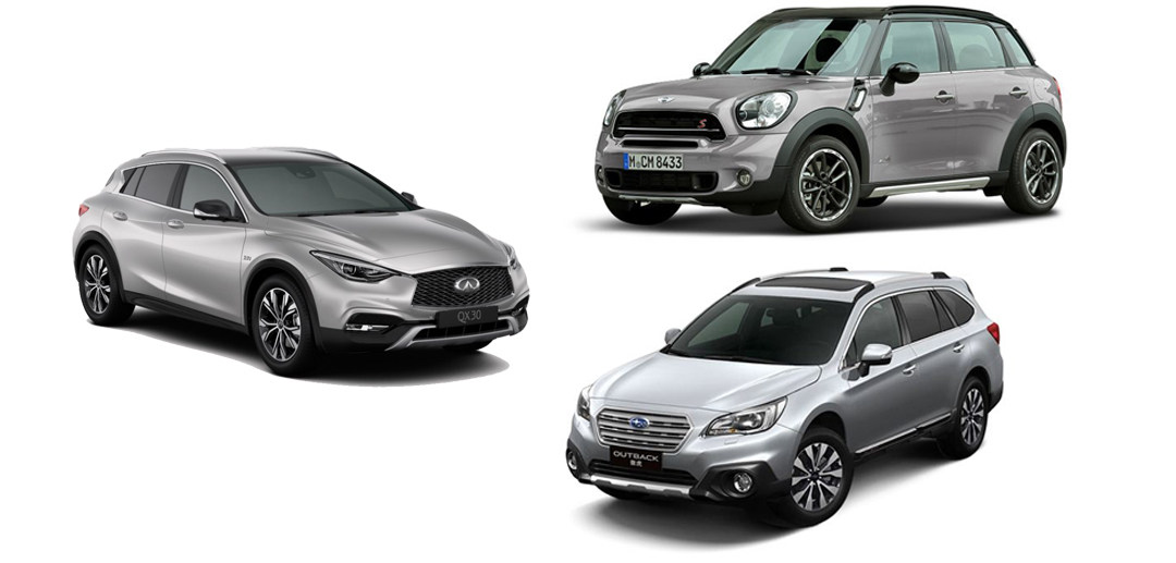 推荐的车型分别是MINI COUNTRYMAN 1.5T COOPER ALL4、斯巴鲁傲虎2.5i 豪华导航版 EyeSight还有英菲尼迪QX30 2.0T四驱时尚版,指导价均在30万左右。