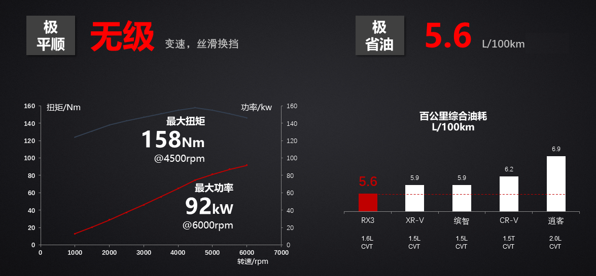 实话说,刚听到1.6L发动机有些提不起兴趣,而且还是最没驾驶乐趣的CVT变速箱,但实际驾驶时这套动力却给人不错的好感。首先足够平顺,这是CVT的特性;其次还真不会给你肉的感觉,这套CVT可模拟8速换挡,一脚油门下去转速提升很快,动力输出迅速,虽然提速不算快,但至少还是有向前冲的势头。且这套阿特金森循环加持的动力系统更多的是为经济性服务,官方百公里5.6L的油耗的确非常出色。