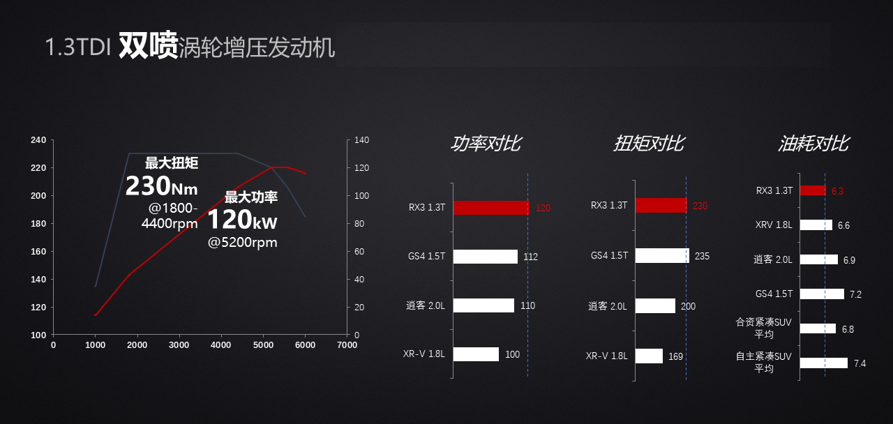 而1.3T发动机数值上的确非常不错,动力输出比传祺GS4的1.5T、逍客2.0L都要强,油耗水平也足够出众;而变速箱则采用爱信的6AT,这也是诸多大牌喜欢用的传动系统,就不多说了。由于试驾时间较为短暂,并没有体验到这款机型,有机会教授再来细说。