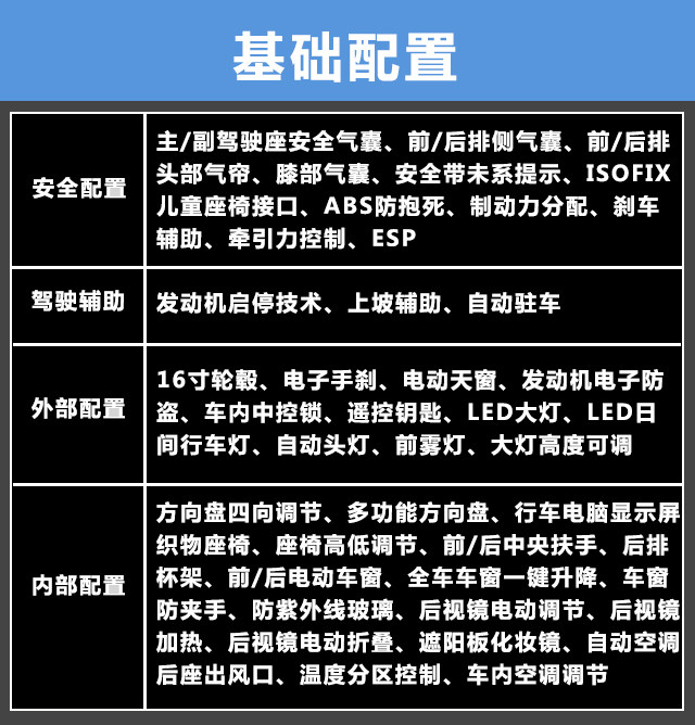 来看看最低配的精英版的配置,可以看到凯美瑞的基础配置还是有些诚意的,像是LED大灯、自动空调和后排出风口这几个配置都不错。
