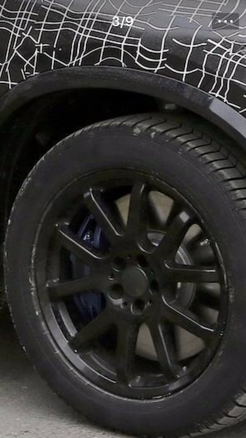 把图片放大后,可以看到,路试车配备的是蓝色的刹车卡钳,所以这并不是普通的X5?而是M Performance?