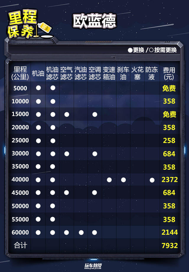 教授总结:欧蓝德的整车质保为五年或10万公里,并且赠送了两次的免费保养和一次的免工时费,这样的政策还是比较良心的。小保养价格为358元,6万公里的总保养费用7932元,表现中规中矩。综合来看,2.0L车型年花费22886元,2.4L车型年花费24093元,处于合理的范围。