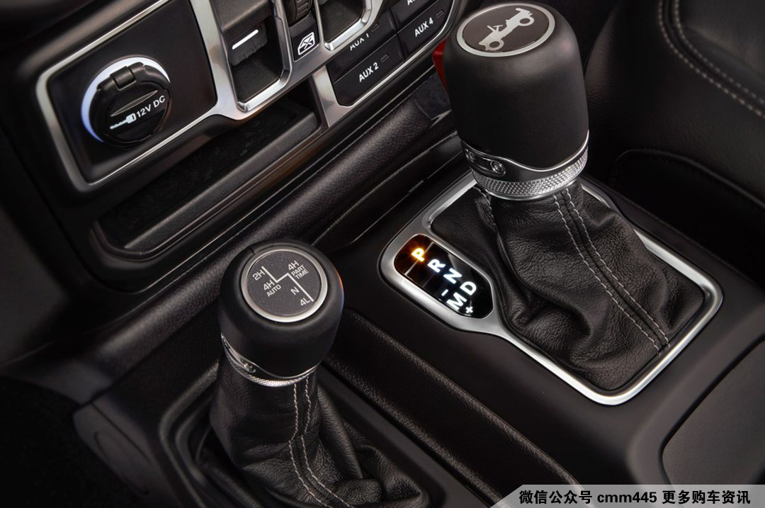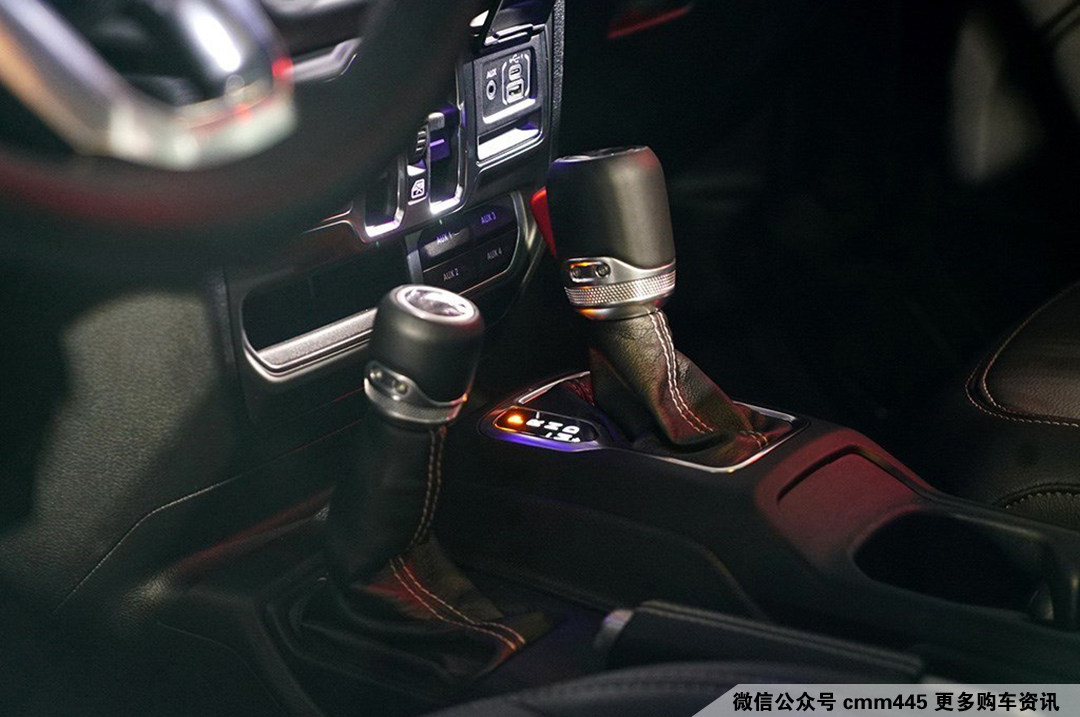 两个挡把?估计不少90后会感到疑惑。其中是常规的变速箱挡把,而另一个则是分动箱挡把用以变换驱动形式,在如今使用电子按钮式的潮流中,新一代牧马人这样则是一种对传统的继承以及致敬,而且变速箱挡把头还有着一个jeep willys 的经典漫画形象。