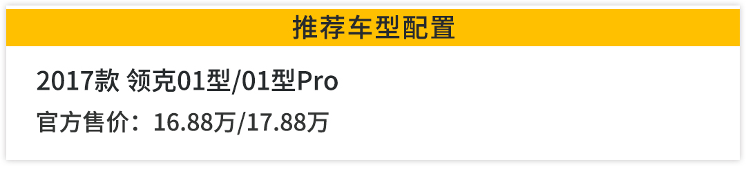 对于领克来说,其实我们不难看出它的诚意,丰富的配置即便选择入门版,性价比依然很高,但是教授还是认为其中01型性价比是最高的,虽然是次低配版本,但是应有尽有的配置在同等价位的车型当中几乎找不出第二辆。而01型Pro也比01型贵上一万,但是这属于锦上添花的配置,多给一万增加更多高级配置,教授认为这也是值得的!