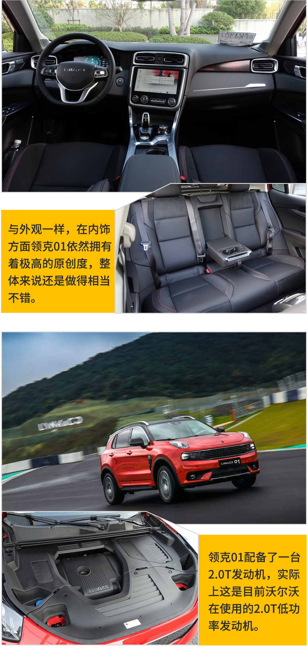 不少人认为,底盘是大多国产品牌的硬伤,但领克01采用了CMA(Compact Modular Architecture)架构,(这是由沃尔沃主导与吉利汽车联合开发出来的紧凑型车构筑平台),确实可以媲美到很多合资品牌。而且前期领克01全系标配了2.0T发动机,后续将会有1.5T和手动挡车型推出。