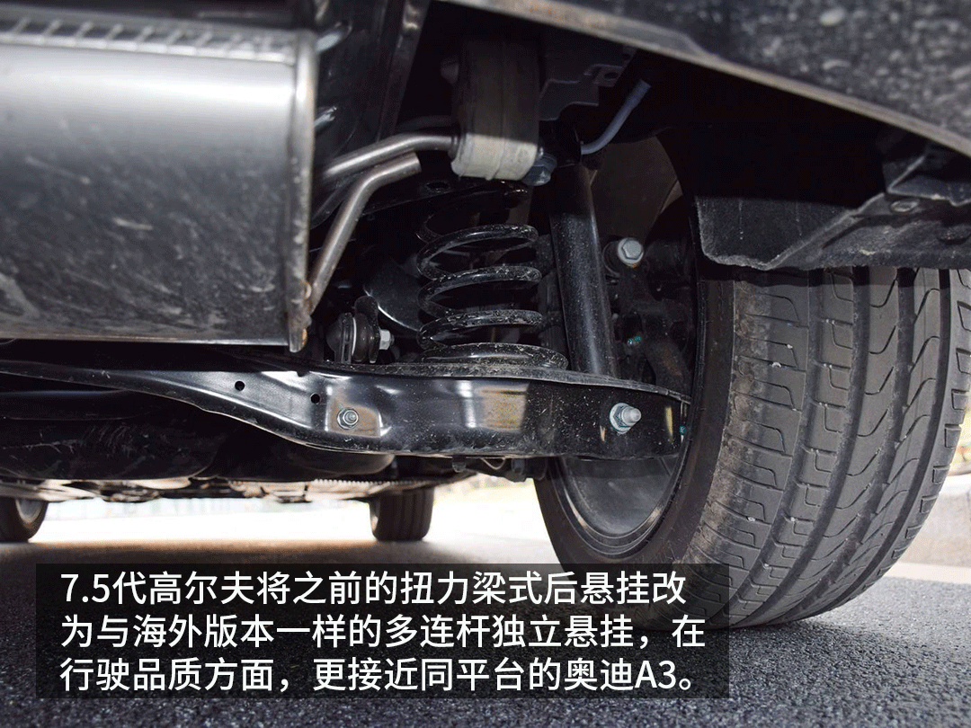 新上市的7.5代高尔夫最大的改变在于换回了后多连杆独立悬挂,实际上舒适性并不会有多大变化,本身高尔夫在同级别中的行驶品质就属于上乘水准,底盘比较扎实。在这方面,奥迪就是奥迪,虽然是同胞兄弟,但是爹不一样出来的就有差别。明显A3在隔音和滤震上是好过高尔夫那么一点点,区别不是特别明显,不过依旧能感觉出。