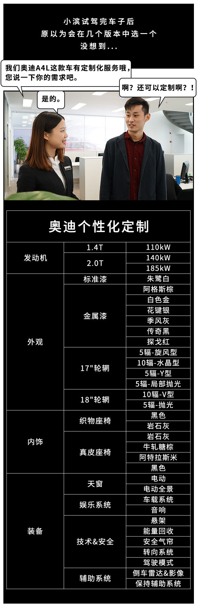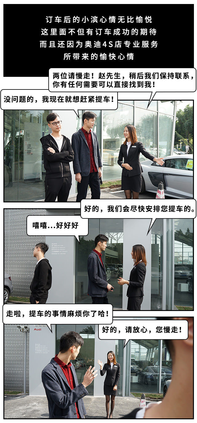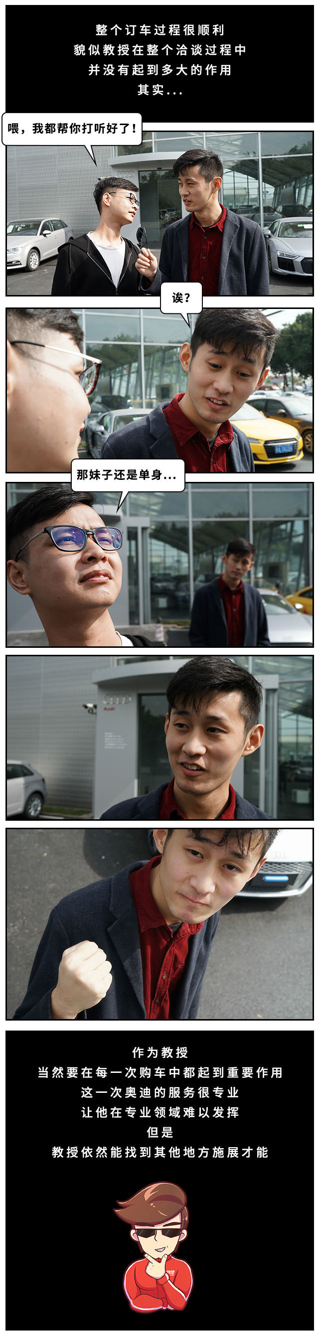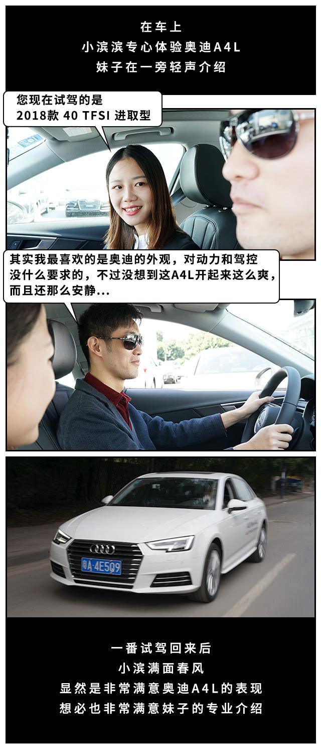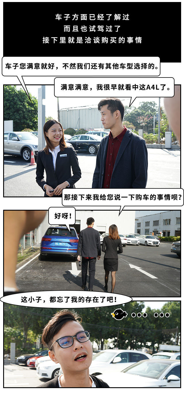 小滨是个年轻有为的平面设计师,出来工作多年后打算换车,对于线条特别敏感的他对奥迪车型情有独钟,而且也看上了奥迪A4L车型。这次由教授带他去4S店看车,如果洽谈成功打算马上订车。教授作为拥有专业汽车知识的人,同时还是奥迪的老客户,对这次洽谈同样非常期待。