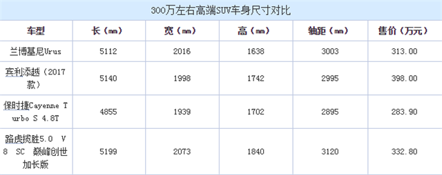 车身尺寸方面,新车的长宽高分别为5112/2016/1638mm,轴距为3003mm。在高端SUV市场,Urus相比于潜在竞争对手在轴距和车身宽度上尺寸占优。