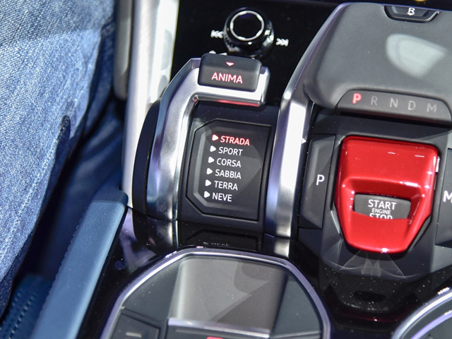 内饰方面,新车同样是熟悉的兰博基尼味,标志性的六边形设计元素随处可见,中控中央配备上下两块液晶显示屏,上方用于导航、音频以及其他对于车辆的控制,下方则用于控制空调,发动机启动按键继续采用类似战斗机的翻转式设计。