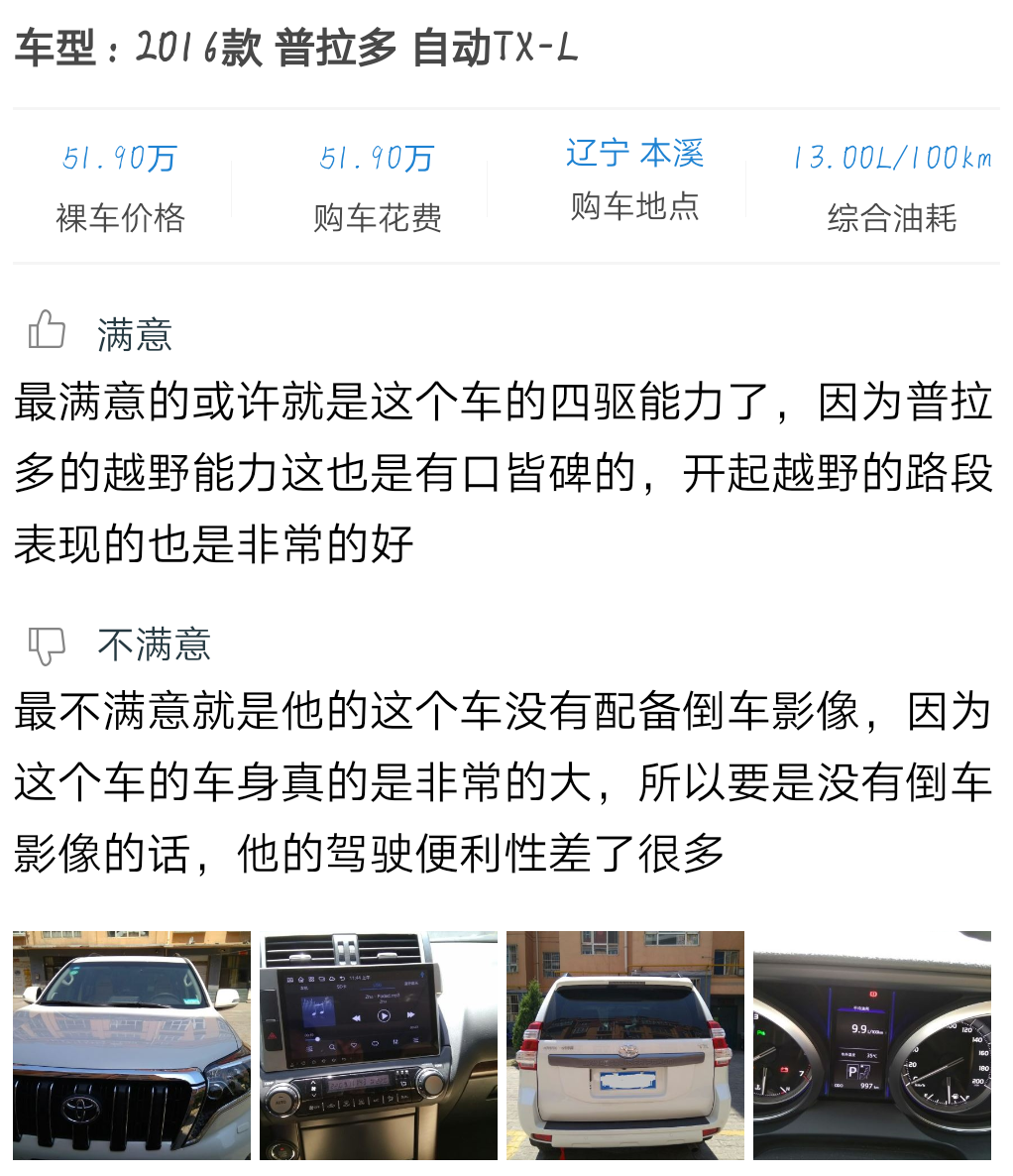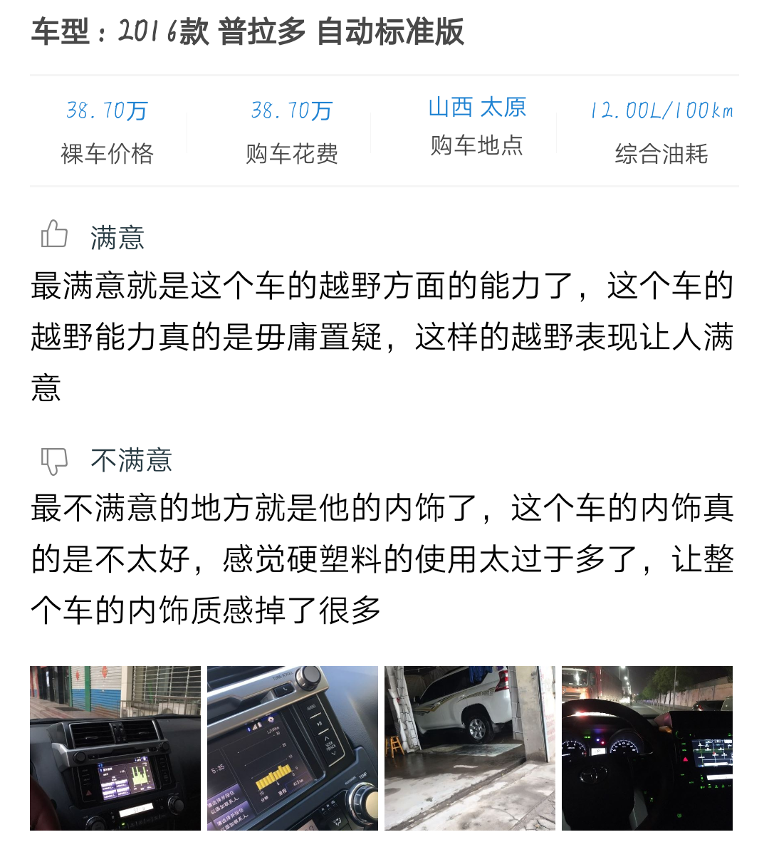 值得一提的是,新款普拉多全系搭载3.5L发动机,与之匹配的是6挡手自一体变速箱,整体的动力表现还是相当不错的。不过参考车主反馈的实际油耗,还是与官方给出来的油耗数据有点出入。