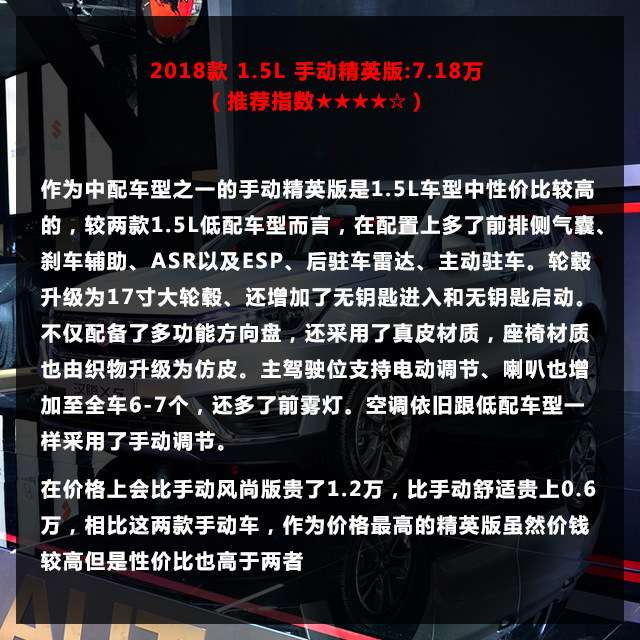 2018款 1.5L 手动精英版:7.18万