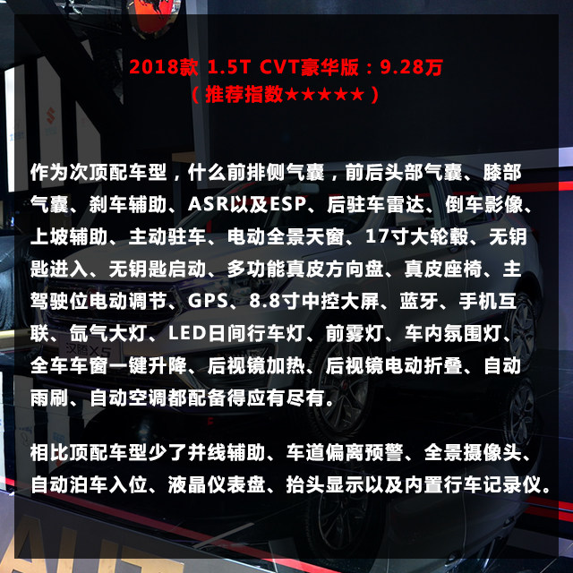 2018款 1.5T CVT豪华版:9.28万