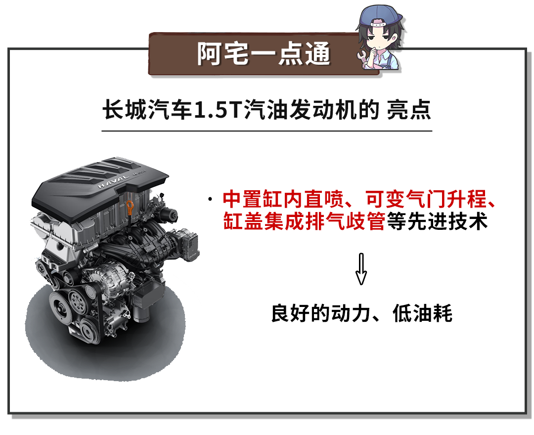 说新的长城汽车1.5T发动机是最强自主1.5T发动机,一点都不夸张。它有着连续可变气门升程技术、中置直喷喷油器、缸盖集成排气岐管、涡轮电控泄压阀、进排气正时控制等技术,简直可以媲美合资的发动机。更能很好地满足消费者对高燃烧效率与低油耗的需求。