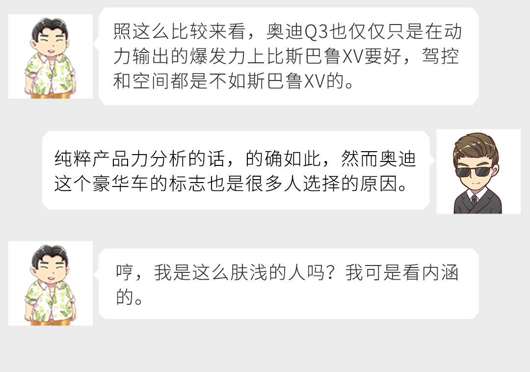 斯巴鲁XV全系只有一副2.0L+CVT的动力组合可选,在动力输出的跟脚程度上做得要比奥迪Q3好。基本上你的脚压下多少,它就能给出多少动力。在市区频繁堵车需要变节奏踩油门时,还是令驾驶员颇为舒心。