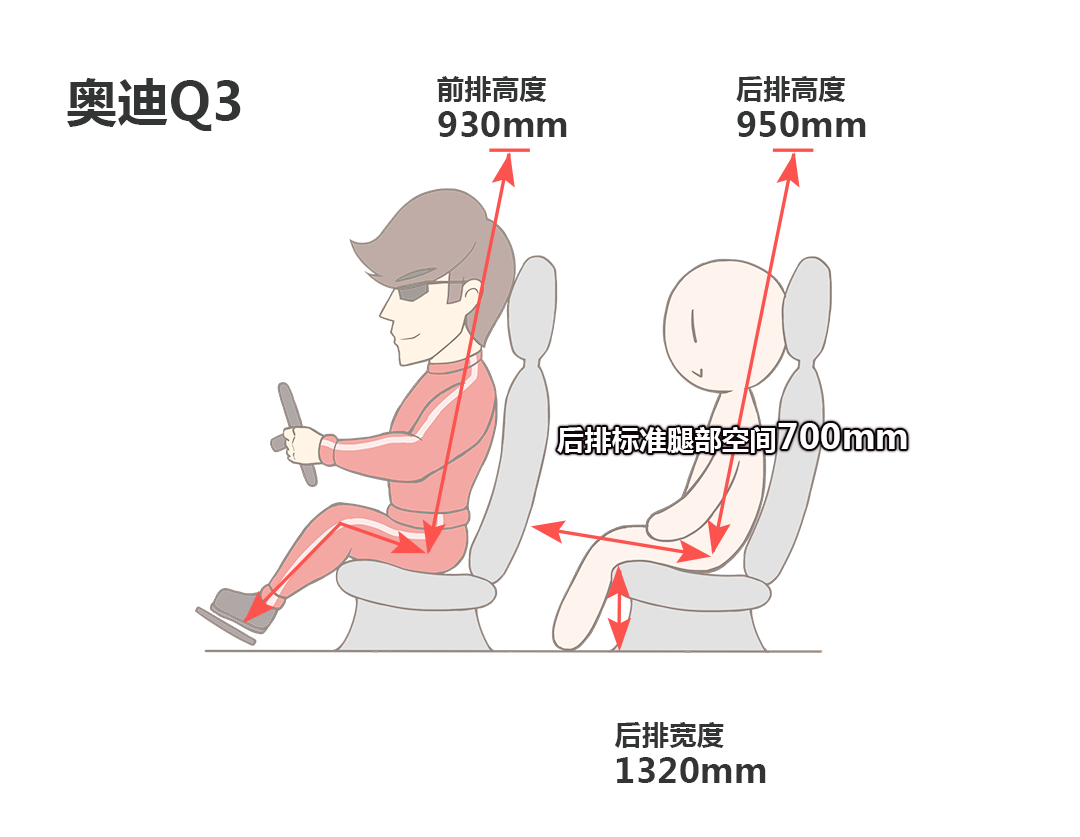 由上图可以看到,奥迪Q3的前排头部空间不如斯巴鲁XV,但是二排头部空间又反胜一筹。而在大家最为关注的二排腿部空间上,奥迪Q3的差距与斯巴鲁XV的差距就有点明显了。