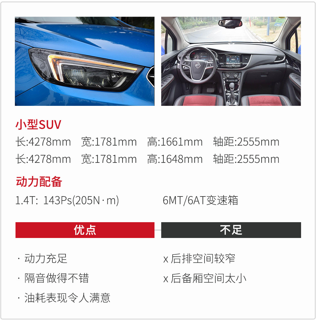 昂科拉在小型SUV当中优惠算是比较给力的车型,基本长期都有3万左右优惠,非常吸引人,而且全系标配了别克全新eConnect智能互联系统、百度CarLife车载系统等配置,而且它的行驶质感比较扎实,底盘稳,隔音好。