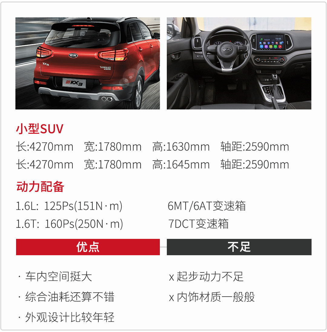 起亚的车型一直以配置、颜值、价格作卖点,但是KX3的颜值和配置跟现在的国产车比起来并不占多大优势,最大的优势在于优惠,而且还是合资品牌,KX3还是有点实力的,低配车型10万不到就有交易。